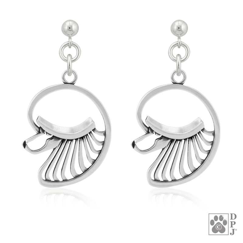 These Poodle Head earrings flaunt the glamorous conformation Continental grooming clip to show off the refined elegance which makes a Poodle so easy to identify. Imagine the realistic texture of our Poodle Head earrings with a topknot that has height, luxurious beauty and thickness. Our Poodle Head earrings illustrate the Poodle’s typey moderately round head with a long, straight and tapered muzzle. Any Poodle fanatic loves how the Poodle’s ears are long, set about eye level and hang close to their head which is included as an authentic detail for this Poodle head profile earrings. It is those Poodle ears and dark, almond shaped eyes that give the priceless, expressive looks that have won so many admirers. See our link for the Scandinavian grooming trim, and view all our Poodle breed jewelry designs.
