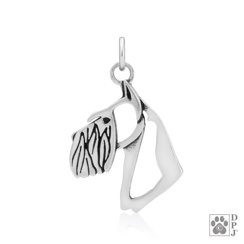 Pendant Size: 1-1/8" tall X 3/4" wideSterling Silver Schnauzer jewelry designs are copyrighted by Dazzling Paws Jewelry LLC. Any recreations of these designs will be prosecuted by law