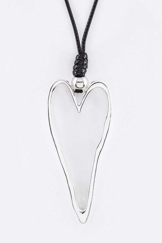 The pendant is heart-shaped with a leather cord. Love this elegant necklace which is a great layering piece to compliment your beautiful look