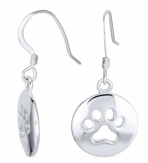 Too dog-gone cute for all the canine lovers. Celebrate your passion for your fave, furry friends with this exuberant, .925 silver wire hook medallion paw foot print earrings. Featuring an endearing, puppy dog theme cutout open paw prints dangling circle earrings.