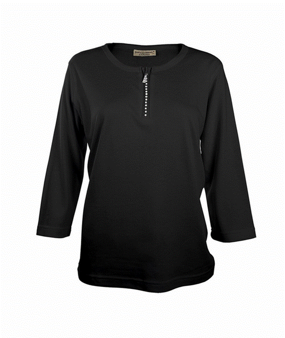 3/4 Sleeve Scoop-Neck Top with 4" Crystal Front Zipper