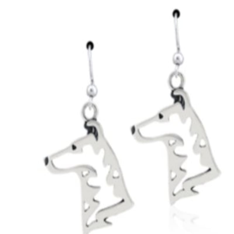 The Smooth Coat Collie earrings show the beautiful Collie’s head in profile. The face captures the “sweet expression” so well known by all Collie owners. The ears are folding softly forward. The eyes gaze ahead at attention. The nose is also distinguished as slightly darker than the gleaming silver of the Smooth Coat Collie earrings.