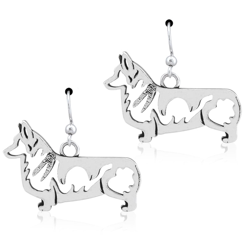 These Pembroke Welsh Corgi earrings are built with substance, sturdy and low-set just as its real life Corgi counterpart. Notice how the Pems ears are pointed at the tip and stand erect to give this Corgi its characteristic foxy look. The Pembroke Corgi earrings are moderately long and balanced in proportions for the breed. Corgis sport a deep chest, strong level back and short tail. We even included the authentic “fairy saddle” marking – legend has it that was caused by being harnessed and used as steeds by fairies and we love that story! The outline of these Corgi earrings draws your attention to the wonderful lines and curves that make this dog so unique, easily recognizable and beautiful. These Pembroke Welsh Corgi earrings are a thoughtful gift for the Corgi lover!